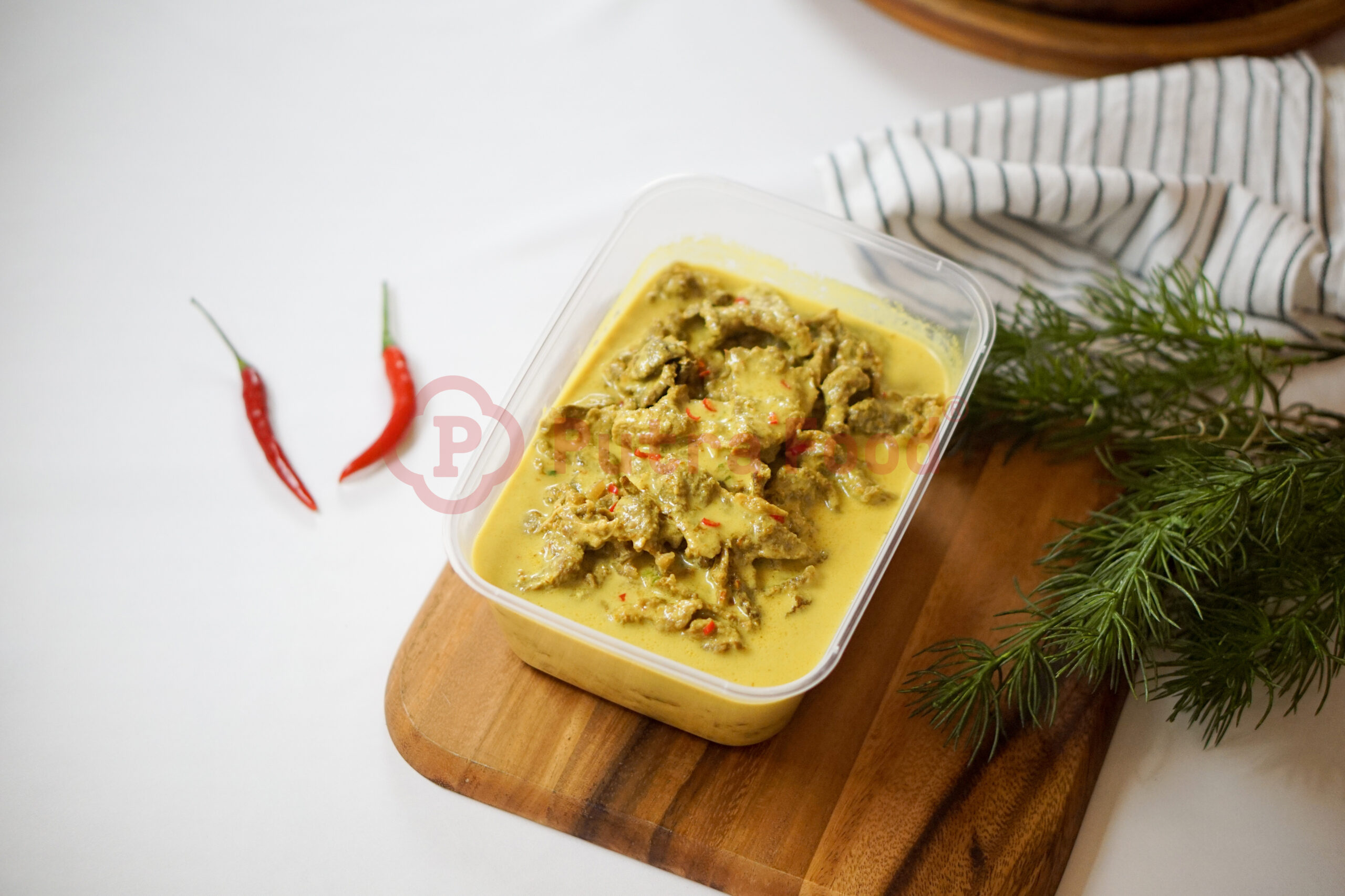 Tender beef cooked in creamy coconut-based masak lemak gravy with balanced spices. Smooth, comforting, and mildly spiced .
